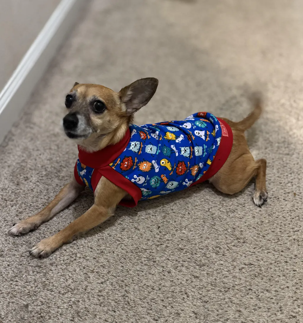 This shirt is super cute and fits my doggie like a glove. Perfect for cool spring nights.