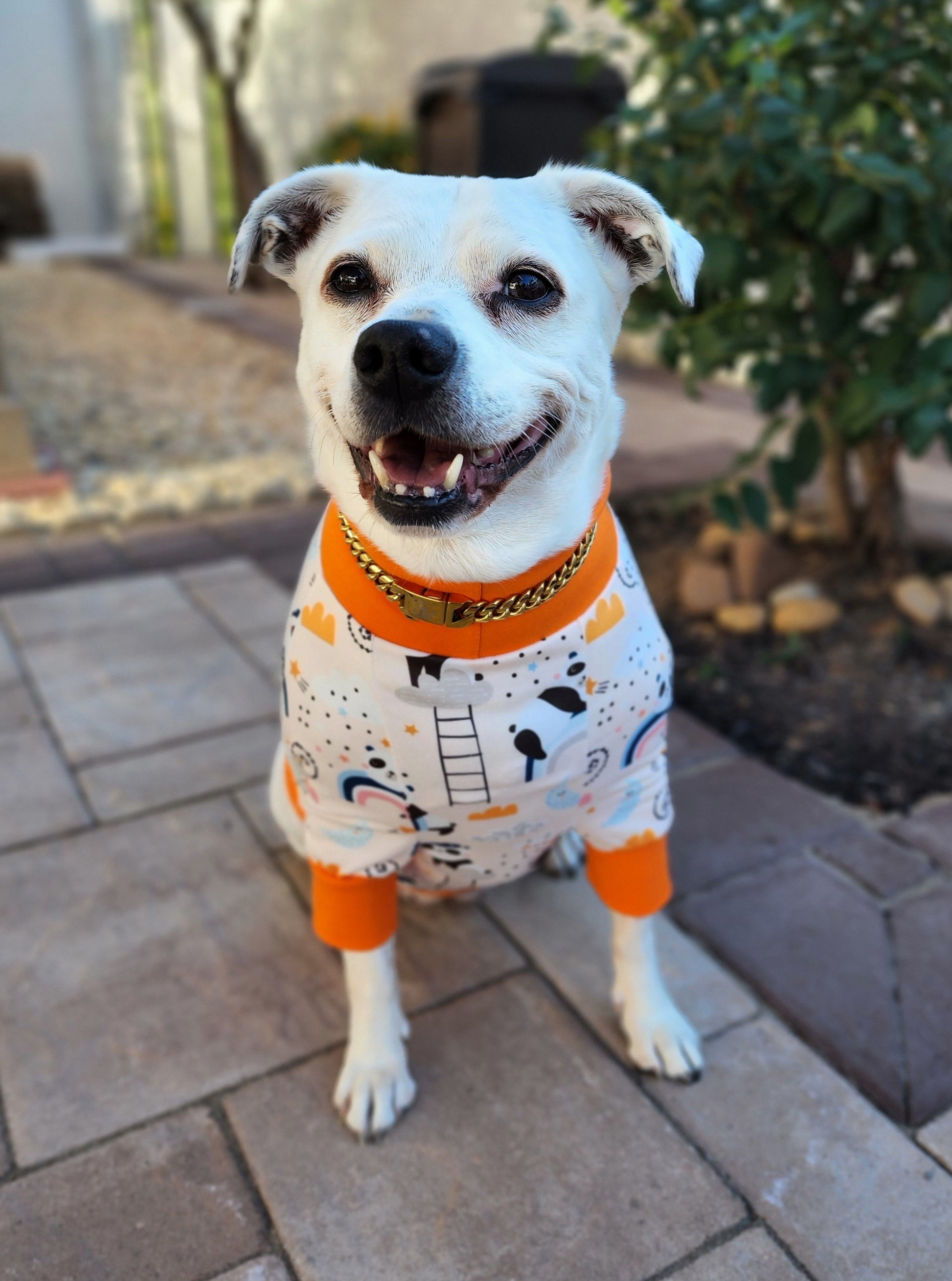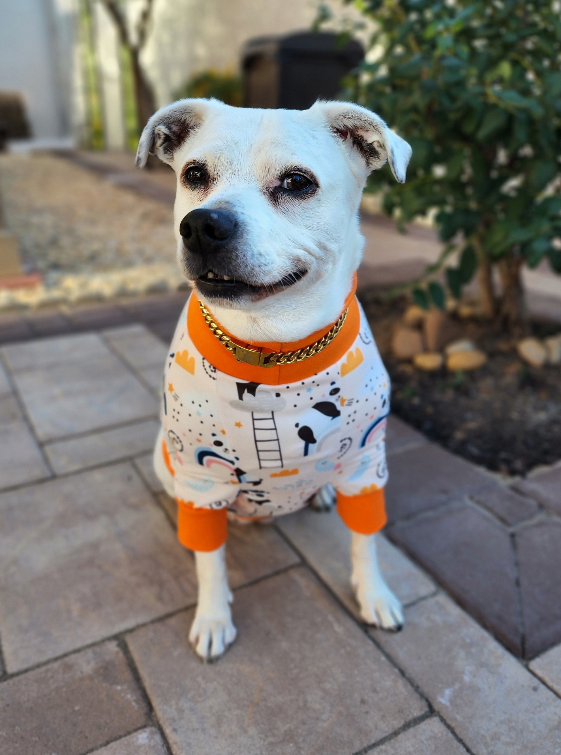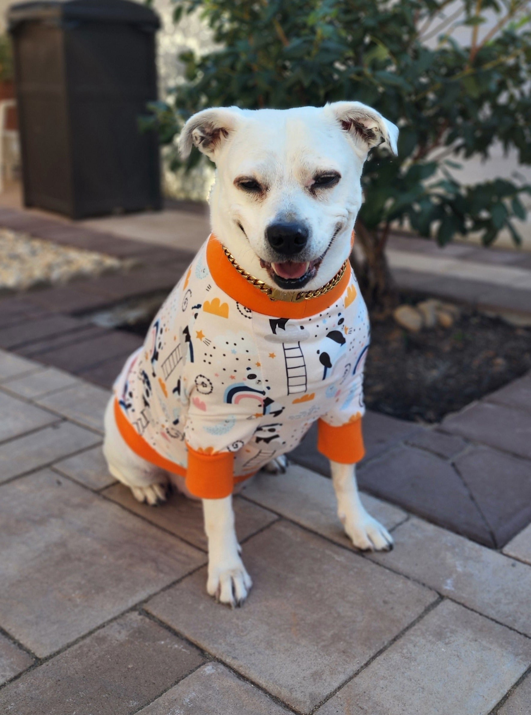 Our garments are meant for short-duration wear, photo ops, lounging, or light activity under supervision. If your pet tends to chew or tug on clothing, this product may not be suitable.