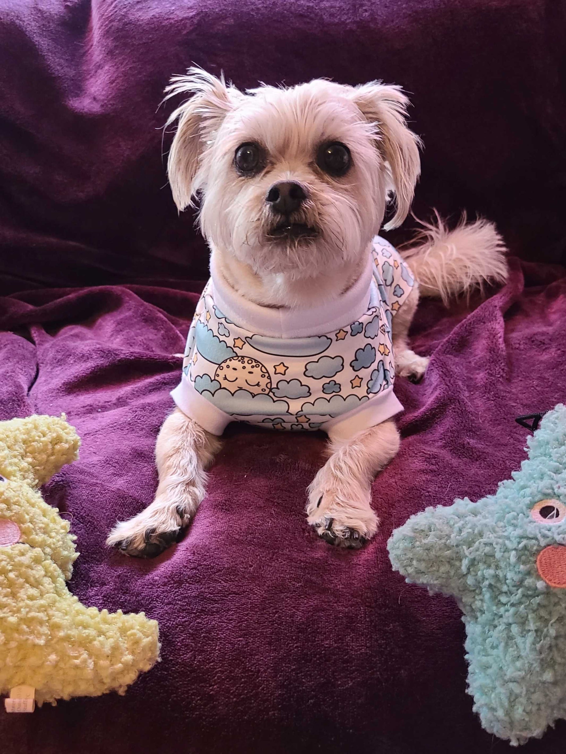 Our garments are meant for short-duration wear, photo ops, lounging, or light activity under supervision. If your pet tends to chew or tug on clothing, this product may not be suitable.